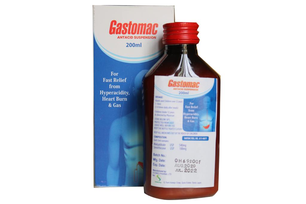 With our uniquely prepared antacid, GASTOMAC, expect safe relief from the above listed as it helps to reduce acidity by neutralizing acid. Reduce the acidity in the stomach and the amount of acid that is reflux into the Oesophagus or emptied into the Duodenum.